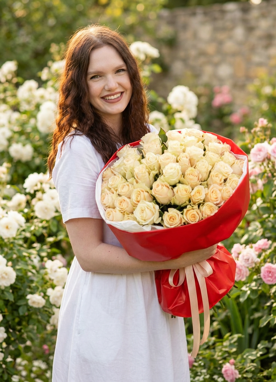 Яркие и ароматные кремовые розы в большом букете. Лучшее качество, быстрая доставка, гарантия свежести. Закажите сейчас!