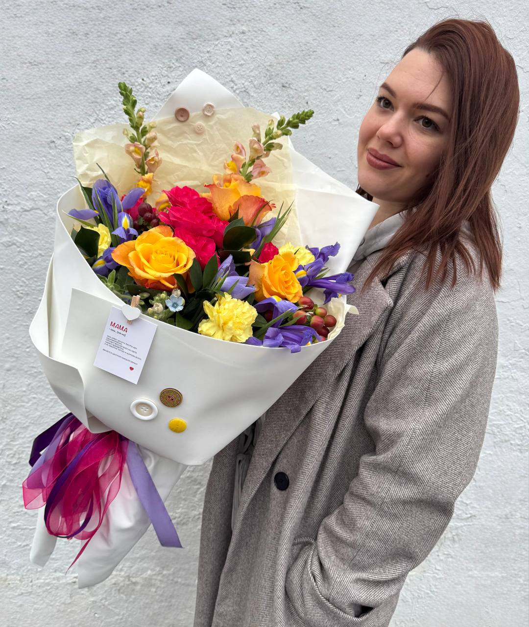 Удивите своих близких оригинальным букетом, в котором гармонично сочетаются красота роз, необычность ирисов, нежность диантусов и аромат матиолы. Это сочетание цветов создаст яркое и запоминающееся впечатление.