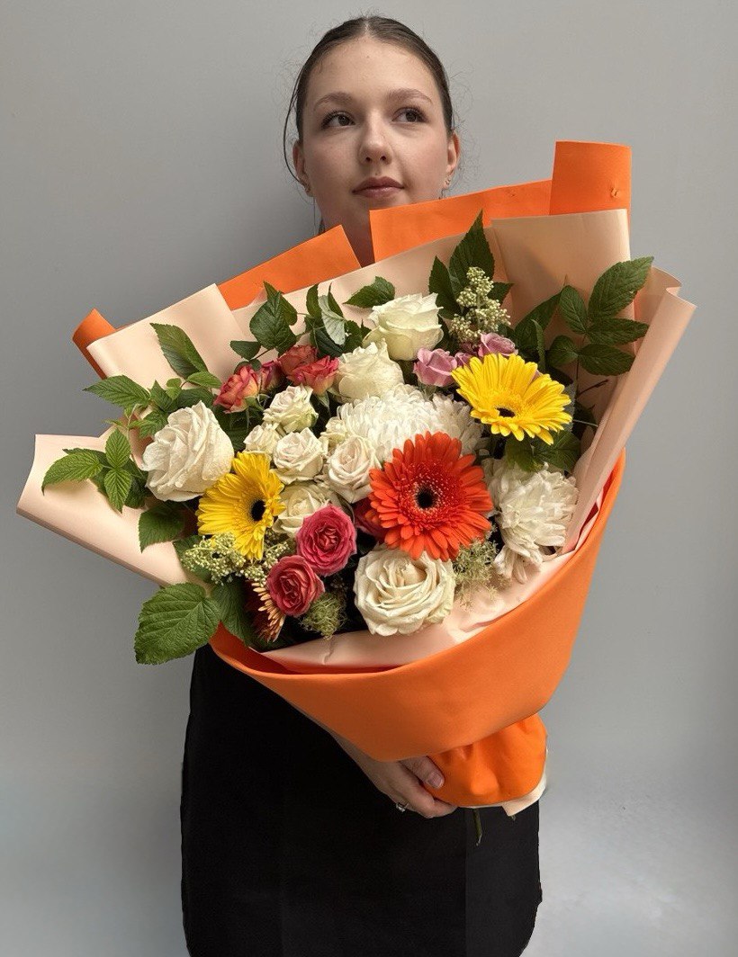 Наполните жизнь яркими красками с нашим восхитительным сборным букетом, в котором солнечные герберы, элегантные классические розы, нежные кустовые розы и стойкие хризантемы создают неповторимую гармонию. Этот букет – настоящий взрыв позитива и радости, который подарит хорошее настроение и незабываемые эмоции.
