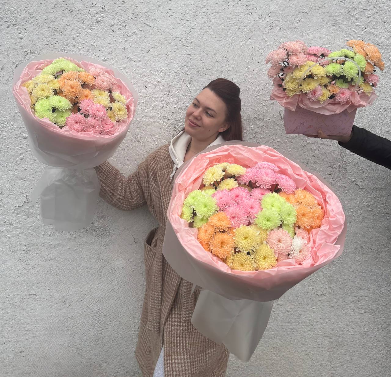 Подарите радость с нашим сборным букетом из пушистых кустовых хризантем! Насыщенные цвета и нежная текстура этих цветов сделают любой день особенным. Быстрая и удобная доставка по городу. Закажите прямо сейчас!