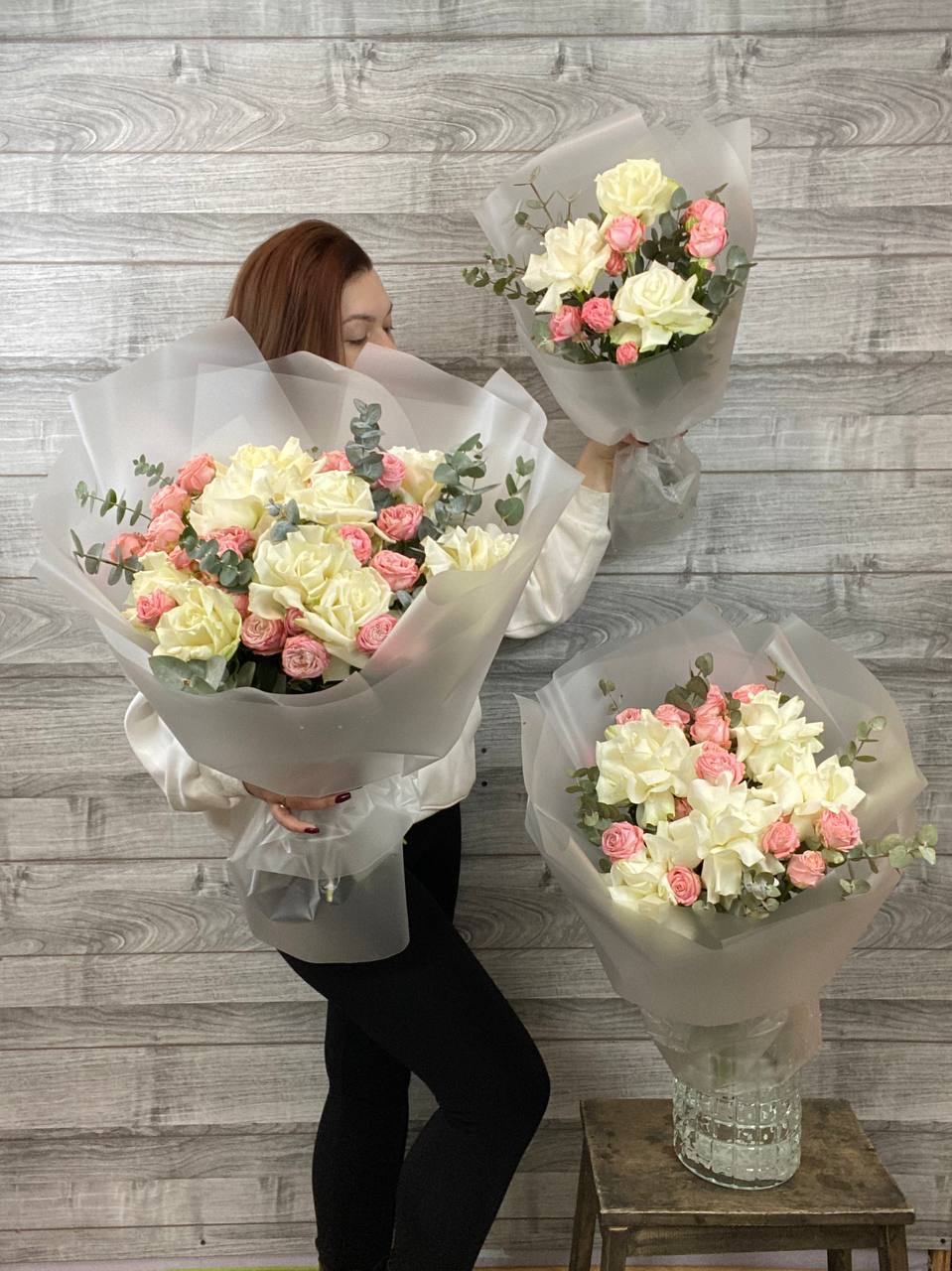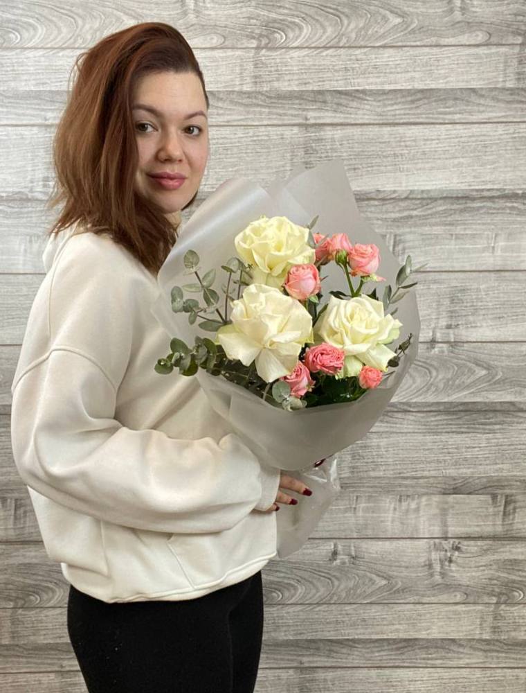 Элегантный сборный букет из французских роз и эвкалипта. Свежие цветы, стильная упаковка и быстрая доставка. Закажите букет на подарок или особый случай.