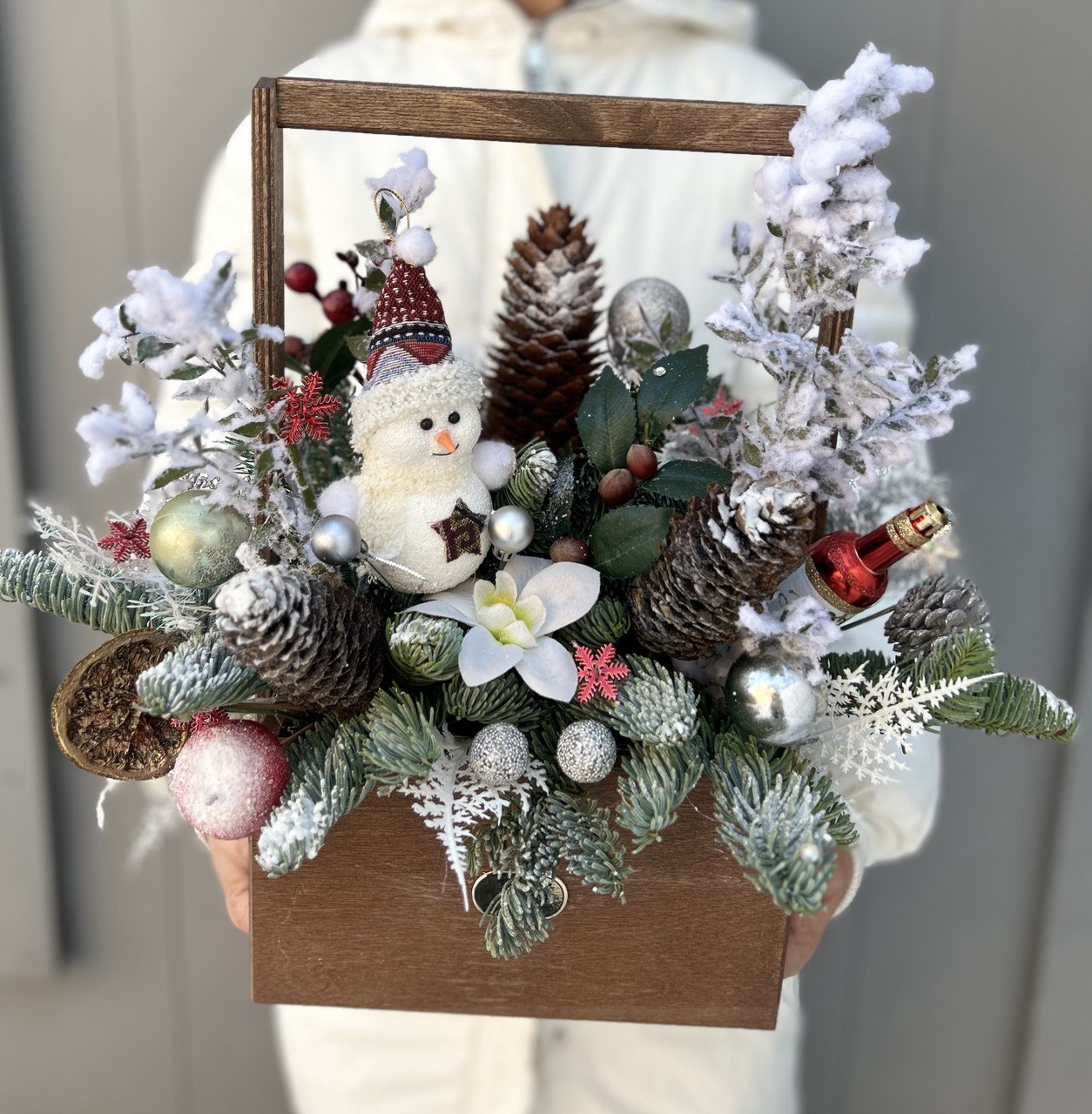 Новогодняя композиция из нобилиса — это идеальный подарок на Новый Год/Рождество для ваших близких и коллег, и прекрасный способ создать атмосферу праздника и волшебства. Купите новогоднюю композицию из нобилиса прямо сейчас и подарите себе и своим близким праздничное настроение!
