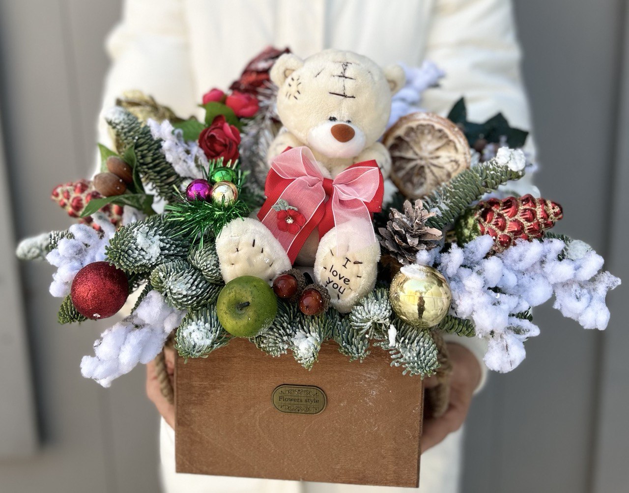 Милая композиция на стол с медвежонком Умкой! Изготовлена из натуральной ели нобилис, которая не осыпается!