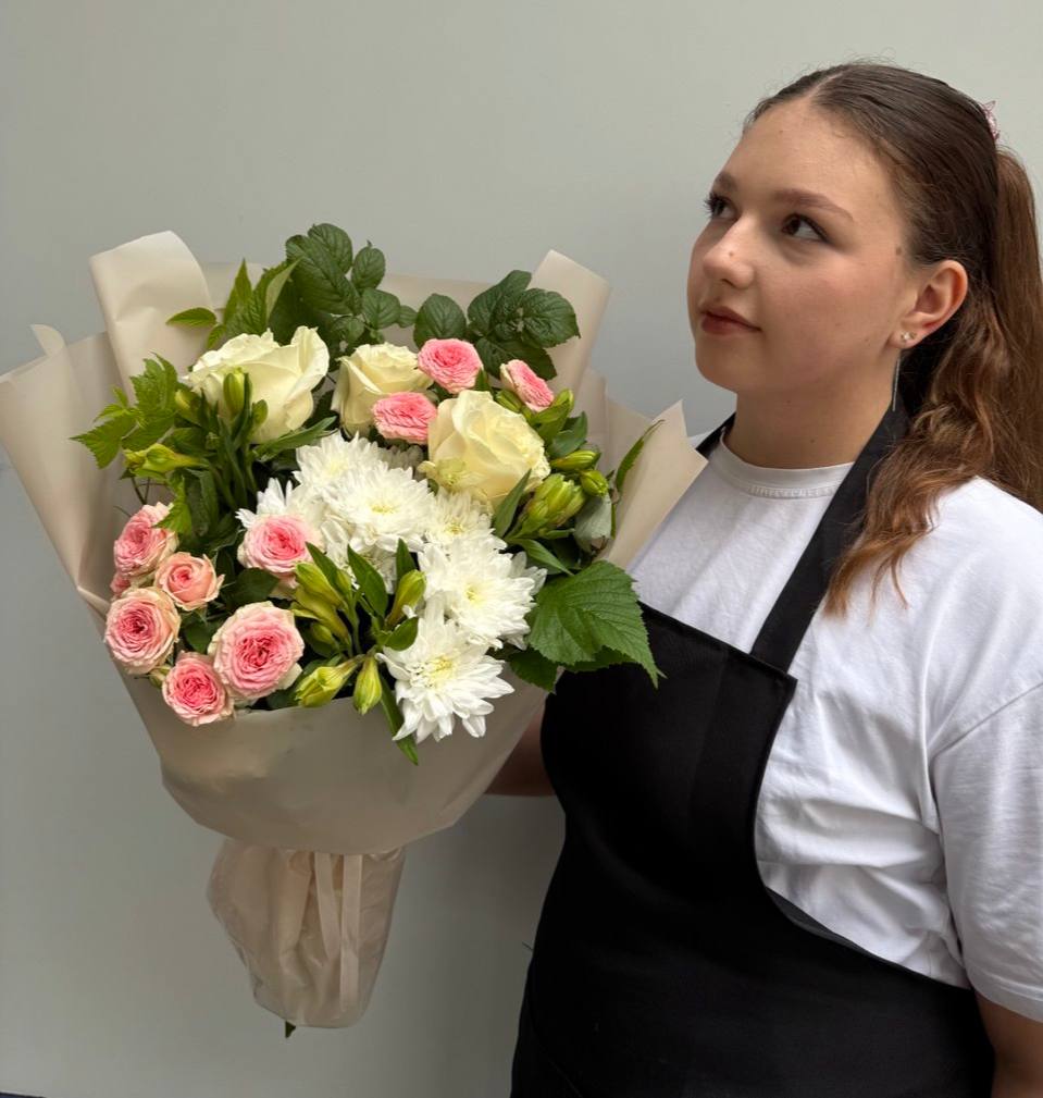 Сборный букет, сочетающий благородство розы, очарование кустовой розы, изящество альстромерии и пышность хризантемы. Создадим букет, который расскажет о ваших чувствах! Быстрая и надежная доставка по Балашихе и Москве.